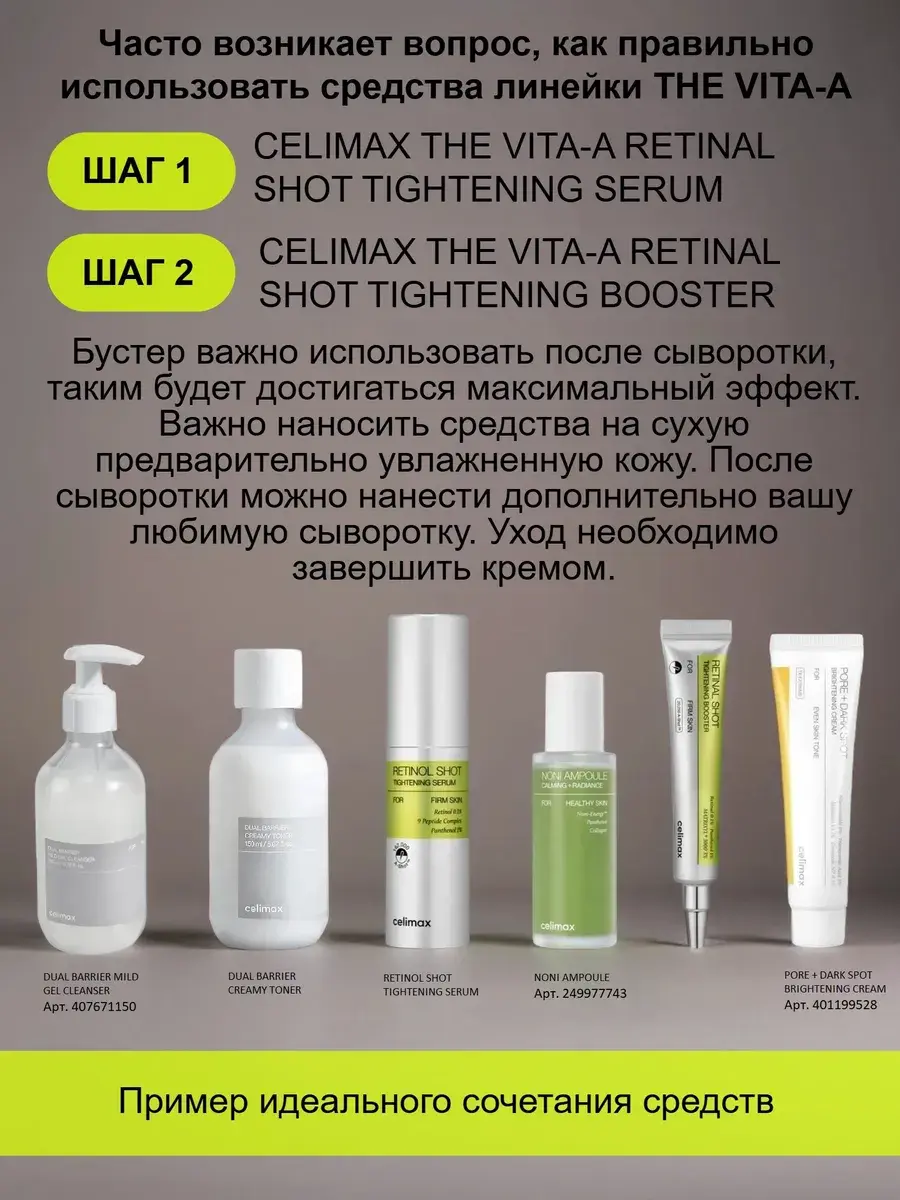 Набор из сыворотки CELIMAX The Vita-A Retinol Shot Tightening Serum (30 мл) и восстанавливающей сыворотки с экстрактом нони Celimax The Real Noni Energy Ampoule 10 мл.